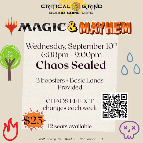 This is a quick look at this week's events. And of course any day is Game Day at Critical Grind. Just stop in anytime and find your next favorite game.